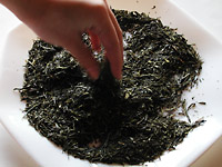 次に取り出すときにお茶のよい香りがしてきたら、別の冷えた皿か広い綺麗な紙などの上に広げて、熱を冷まします。