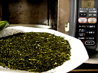 まだ香りがしない時にはもう一度皿に薄く均一にお茶の葉を広げ、もう一度レンジで今度は1分。