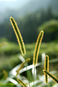 茶畑の周りは、夏の間に刈り終えることのできなかった、雑草で覆われています。