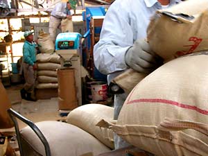 収穫した籾を、籾殻と玄米に分ける作業です。