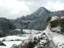 頂上の尖った山は「妙事山」といい、取り立てる特別なことは何もない標高800M程度の極・極、普通の山ですが、
