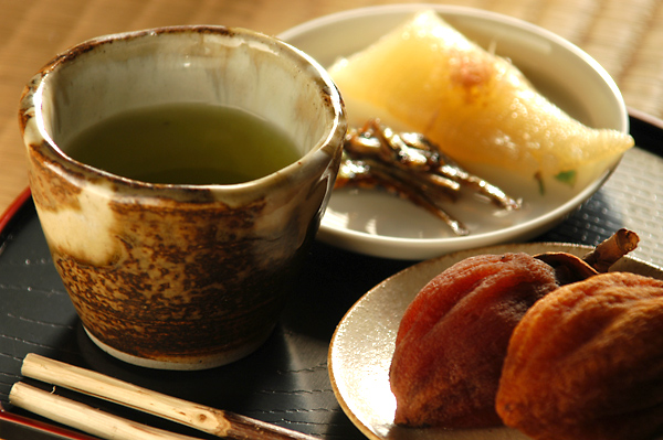 御とそを頂いた後、干し柿をつまみ、御節をいただきます。