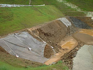 2001年6月19日大雨情報 朝から断続的に猛烈な勢いで雨が降り続きました。 日出集落のあちこちでも2〜3ヶ所の土砂崩れがあり、茶畑や道路で被害がありました。 一番の気がかりが造成したばかりの茶畑・・・。 6月20日の朝になってようやく小康状態となり、幾分ほっとしています。 被害も、1日の降水量が300ミリ以上の割には最小限と言えるのではないかと思います。 2枚の写真は、造成したばかりの茶畑の様子です。